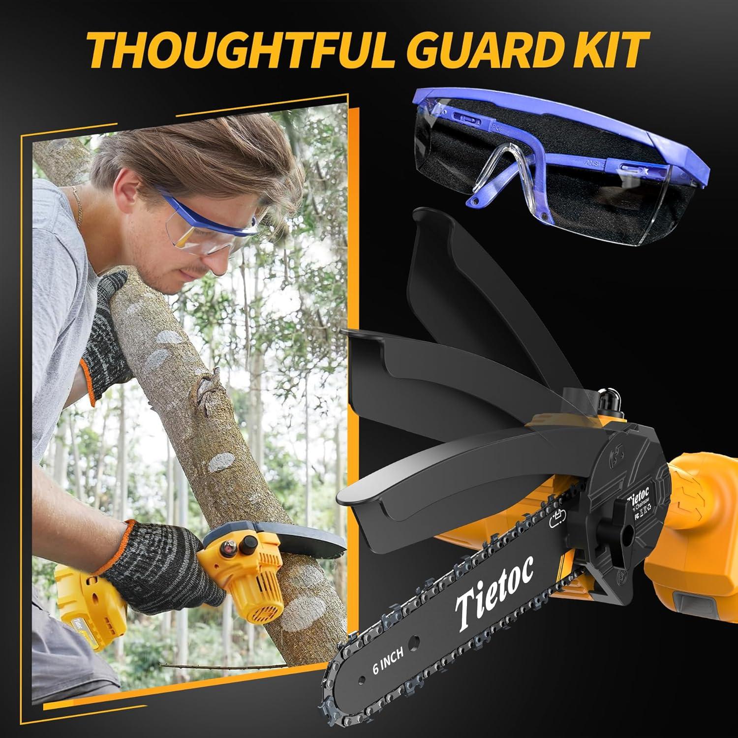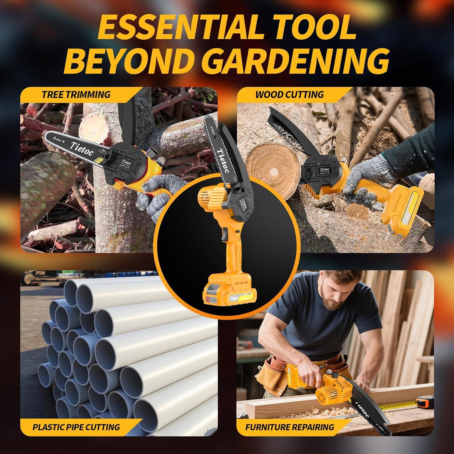 Lightweight, Comfort yet Strong – Tietoc 6 inch mini chainsaw is light and portable (only 3.3lb/1.5kg). Its ergonomic design reduces operational fatigue and enhances grip comfort, which allows elders or women to easily trim garden branches. We are striving to make it a thoughtful gift for both men and women, husbands and wives, houseowners and gardeners.