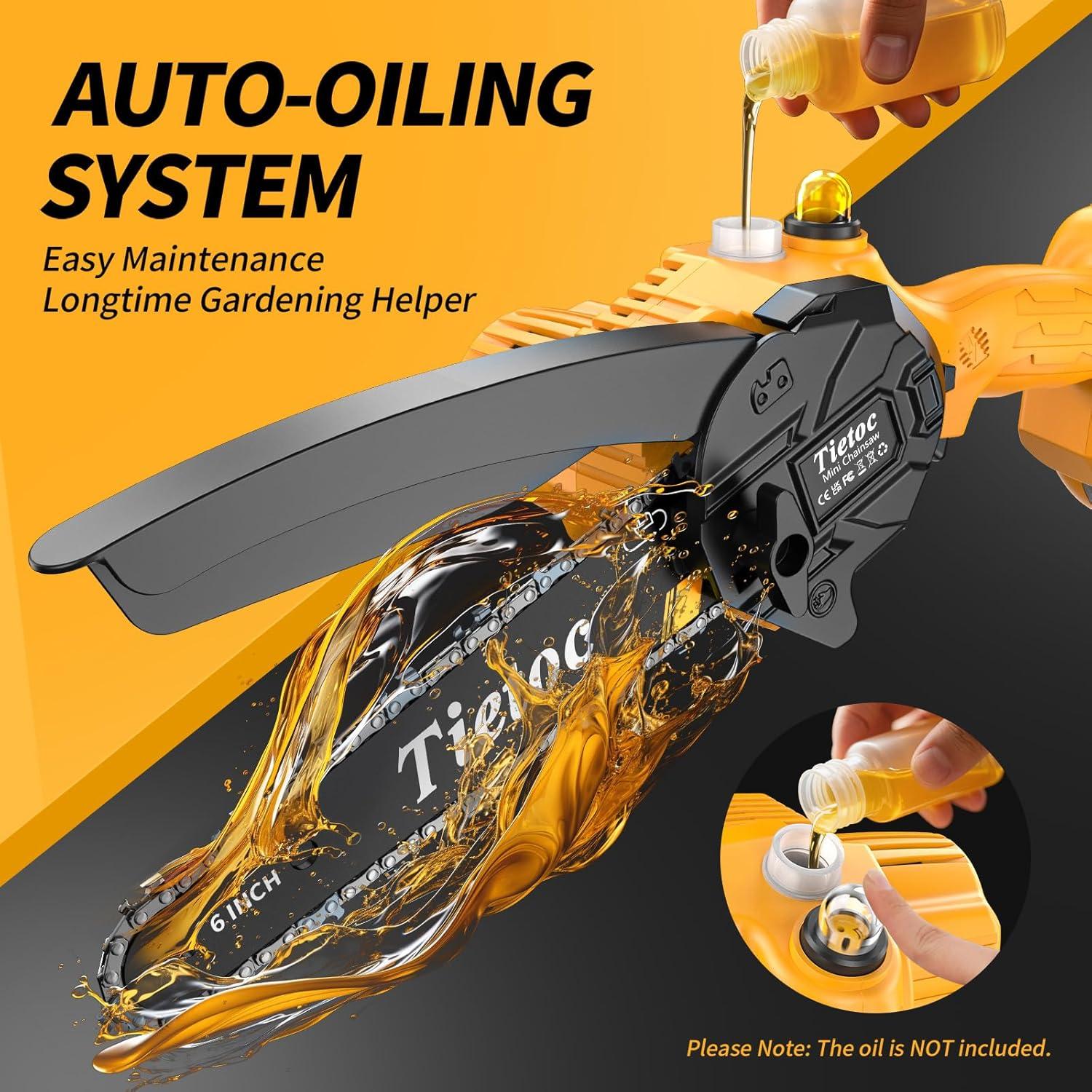 Automatic Lubrication – Tietoc pruning saw features an exclusive auto-oiling and spray system, which can prevent chain dulling and rusting, maintain sharp and smooth cutting performance in outdoor tasks. We are striving to minimize your manual maintenance burden.